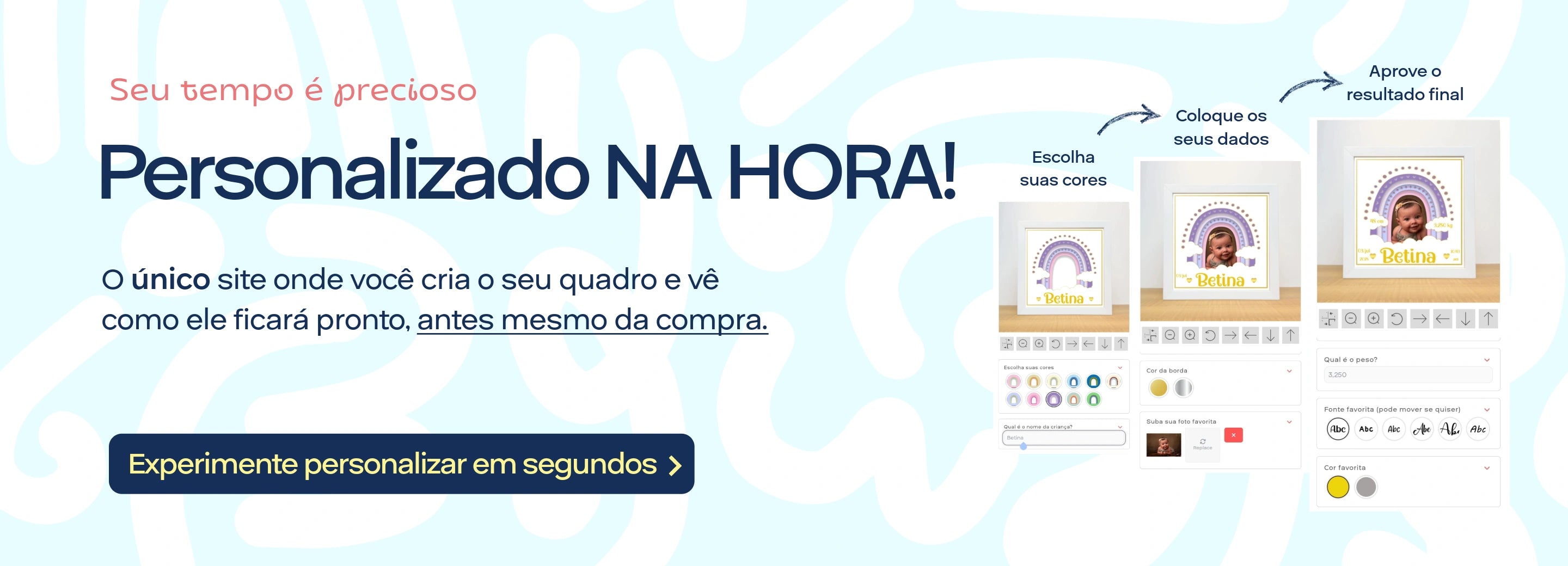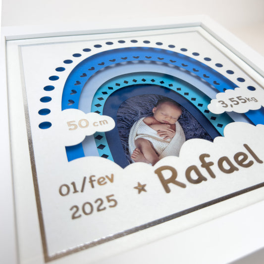 Personalização detalhada: Cada quadro é adaptado às preferências do cliente, incluindo temas, cores e informações específicas do bebê.